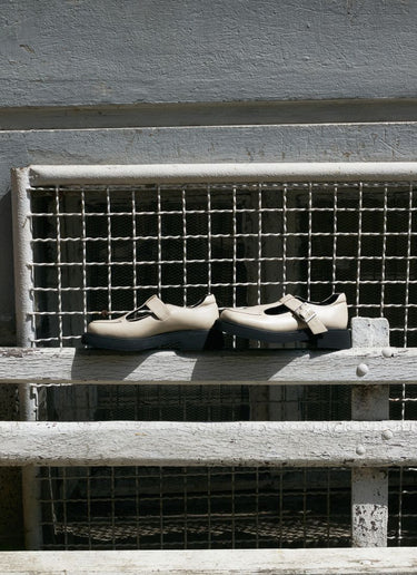 Our MARNIE Jane in cream colored leather reinterprets the iconic School Girl look in a grown-up way. With a formal silhouette and exciting black contrast stitching, a classic Mary Jane buckle shoe with retro charm is transformed into a cool, contemporary statement that can be combined in many ways and worn all year round. For example, with our CEDOUBLÉ Crew Sock.